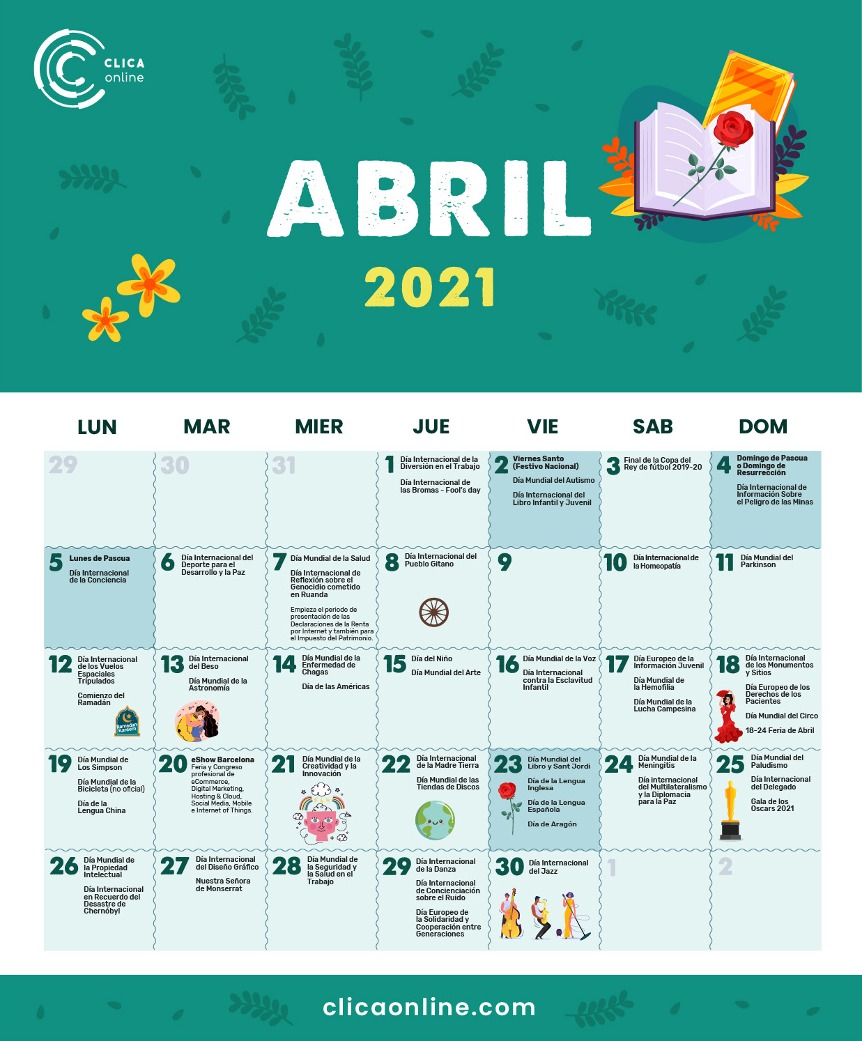 ¡Descarga el calendario de marketing digital con todas las fechas clave de abril totalmente gratis!