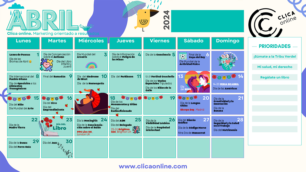 Día del Libro, Feria de Abril, Día del Beso… Y también, Sherpa Day 2024, PPC Live UK, Brighton SEO porque en Marketing nunca se para.