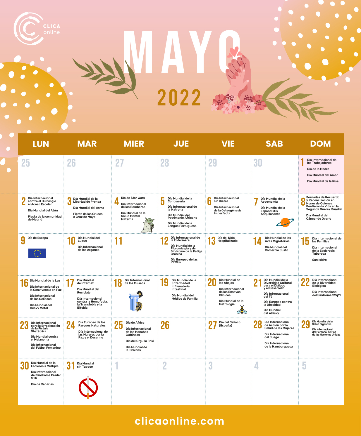 Todos los meses desde Clica os recordamos las fechas más importantes.