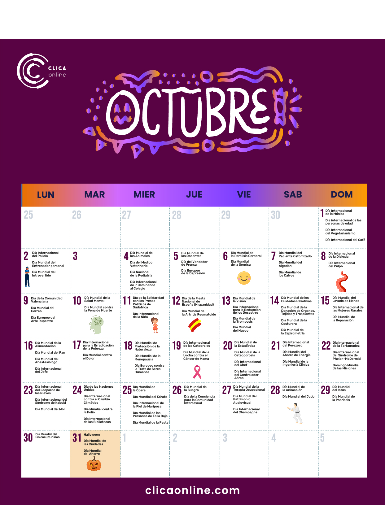 ¿No quieres que se te olviden fechas? Todos los meses tu calendario de marketing digital 2023 en Clica Online con las fechas más importantes y curiosidades varias.