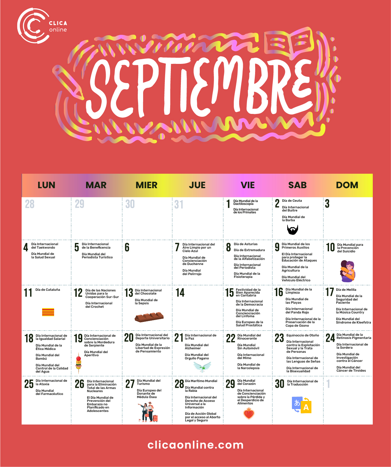 ¿No quieres que se te olviden fechas? Todos los meses tu calendario de marketing digital 2023 en Clica Online con las fechas más importantes y curiosidades varias.